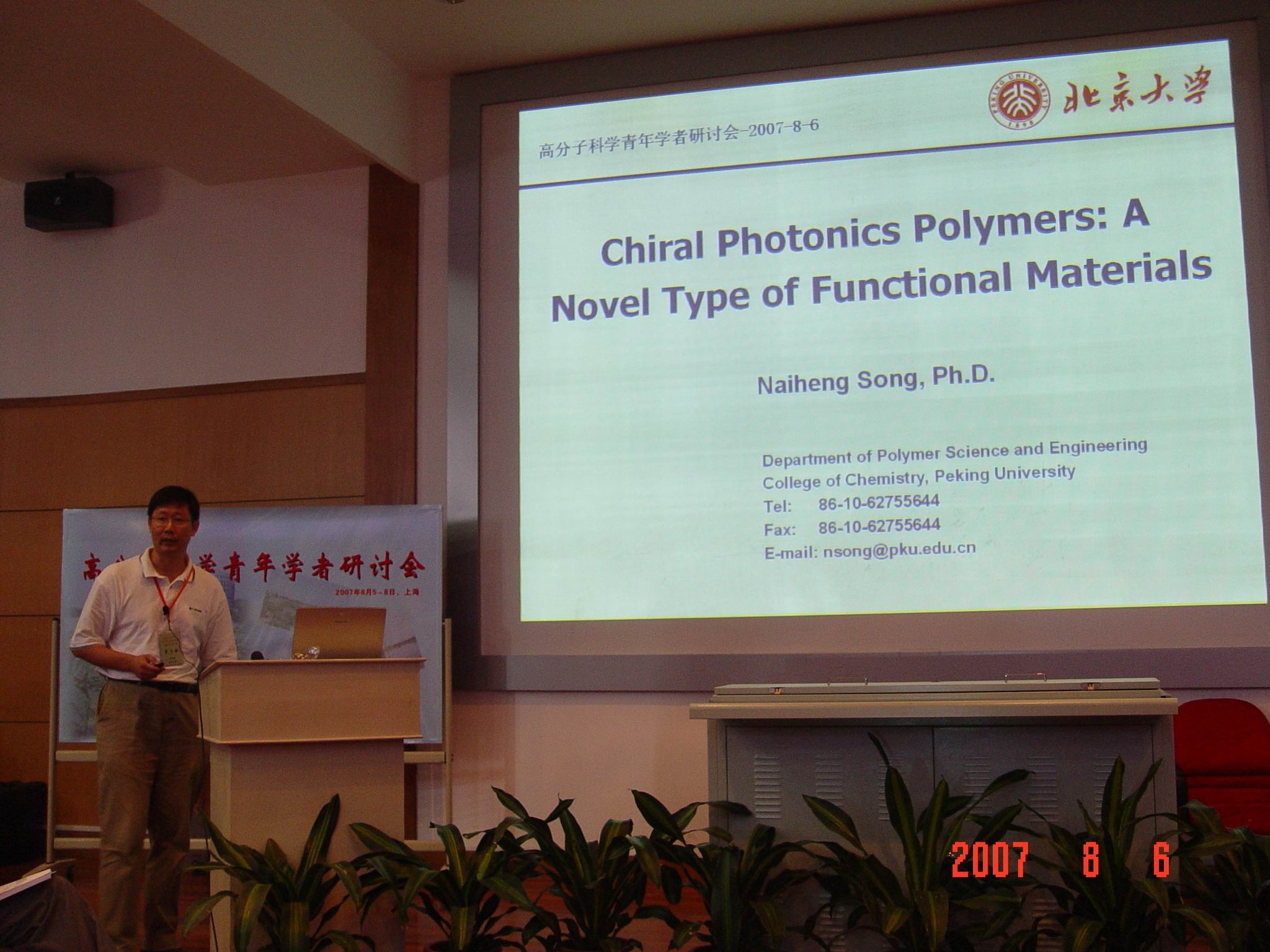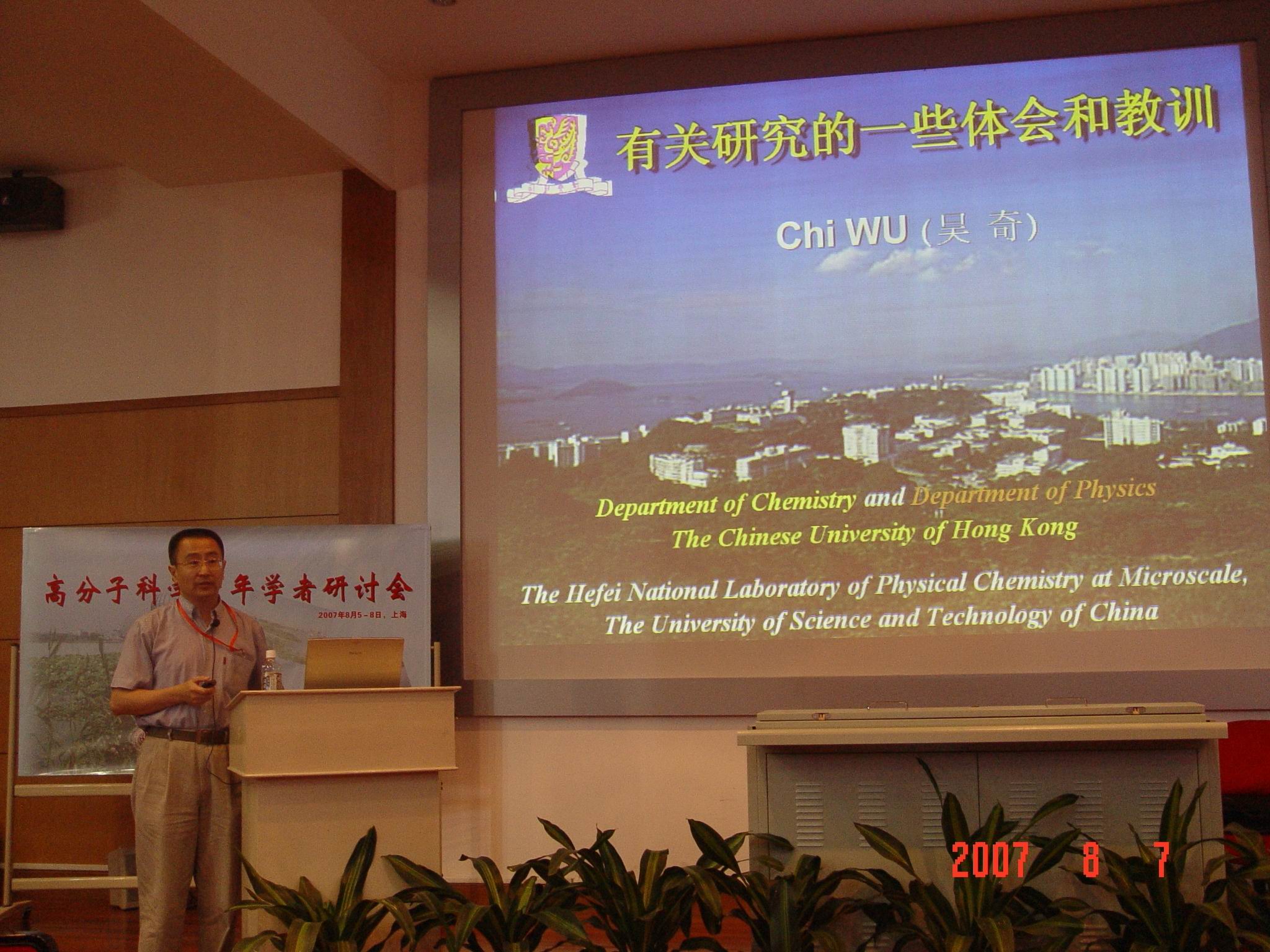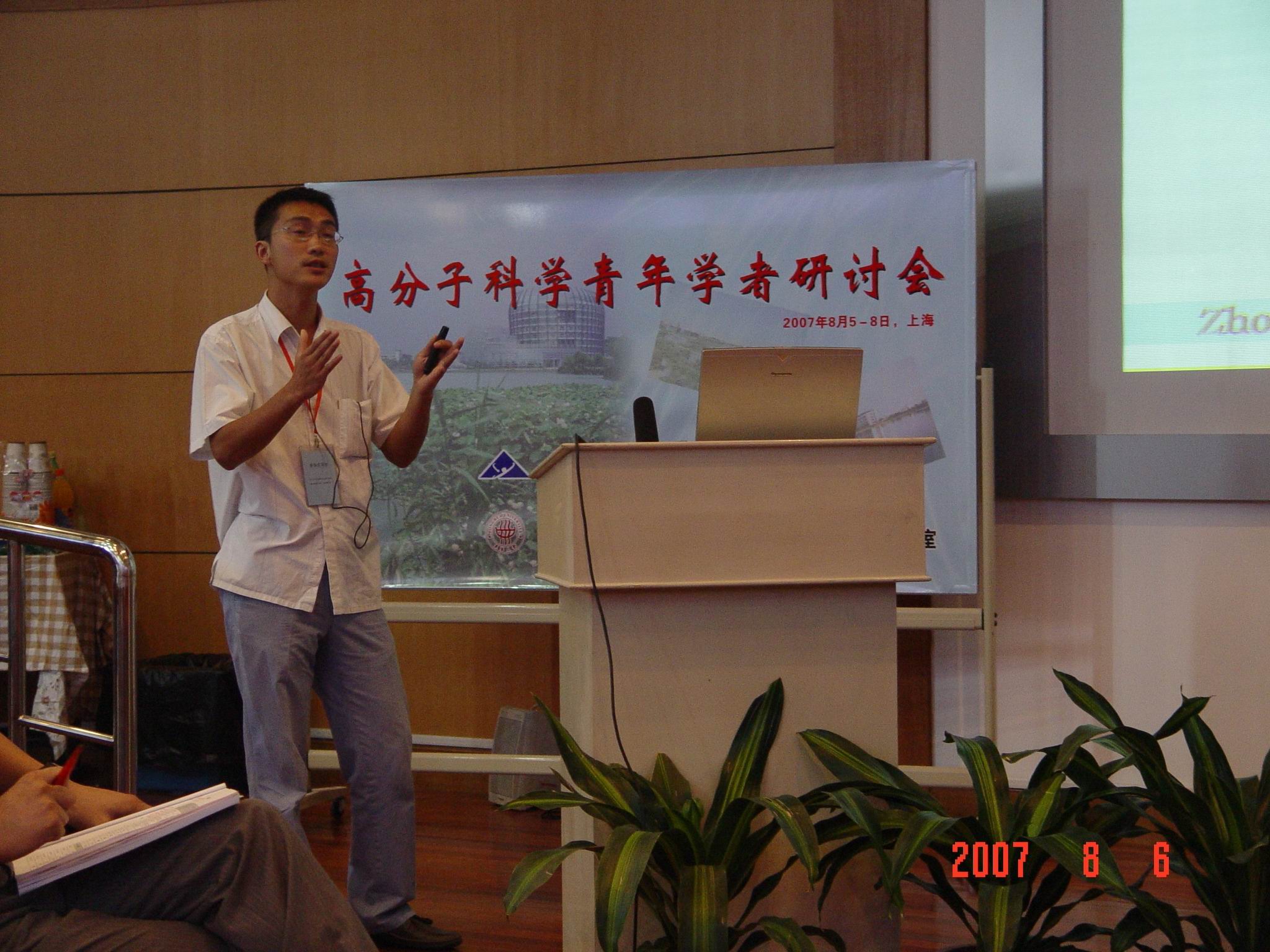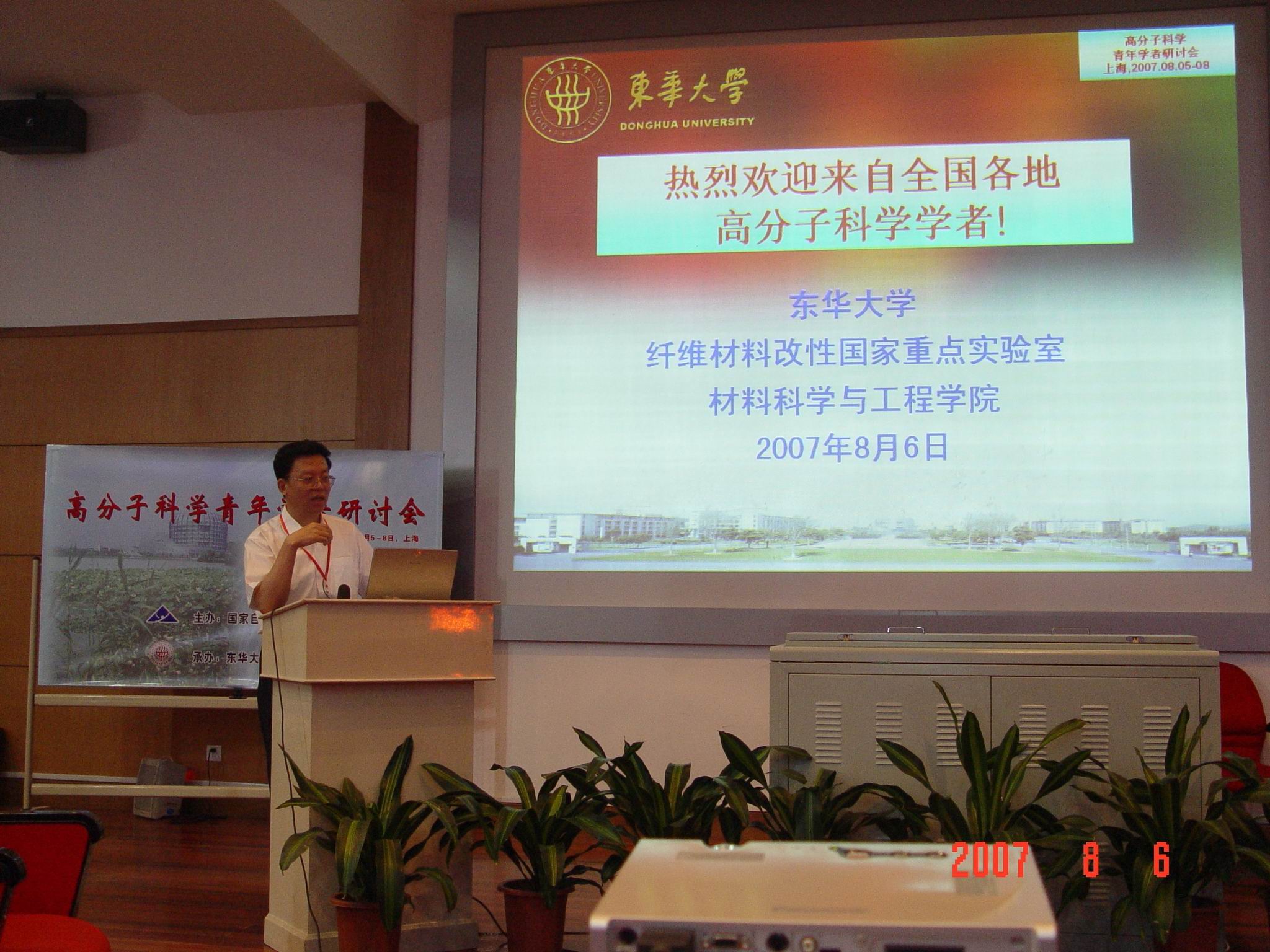 国家自然科学基金委员会化学科学部于2007年8月5-8日在上海召开高分子科学青年学者研讨会,会议由东华大学纤维材料改性国家重点实验室承办,在东华大学延安路校区举行。国家自然科学基金委员会领导林国强院士、董建华教授,高分子领域的颜德岳院士、江明院士、吴奇院士,东华大学副校长朱美芳出席了会议,来自全国各地的50多位高分子科学青年学者参加了研讨会。会议讨论了高分子科学前沿科学问题、高分子学科发展现状与未来趋势、国家自然科学基金应优先资助的研究方向等问题。(照片提供:材料学院)