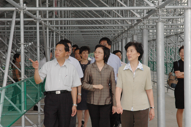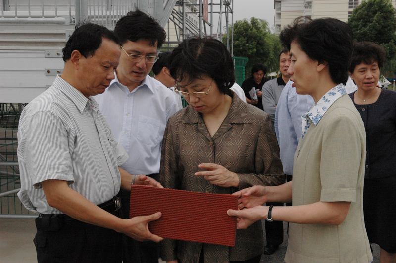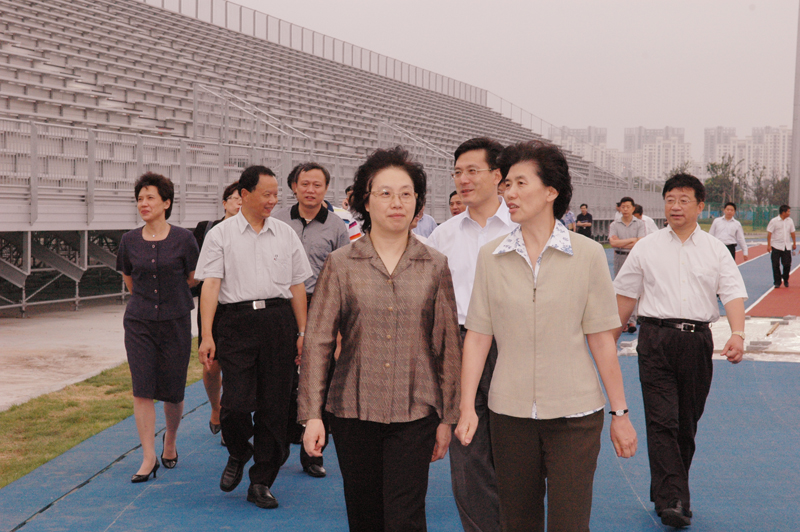 9月21日,上海市委副书记殷一璀、副市长杨定华等视察了松江大学城体育场。松江大学城体育场已于近日落成,即将迎来2007国际田联黄金联赛上海站的比赛。我校党委书记朱绍中、副书记兼副校长吴楚武等陪同视察。(摄影:党委宣传部 夏正德)