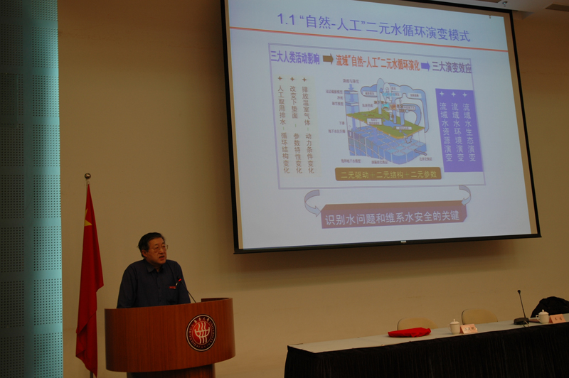 受聘仪式结束后,王浩院士为我校环境学院师生作了题为《水文水资源研究的前沿和热点问题》的报告。(摄影:党委宣传部 夏正德)