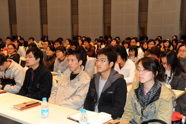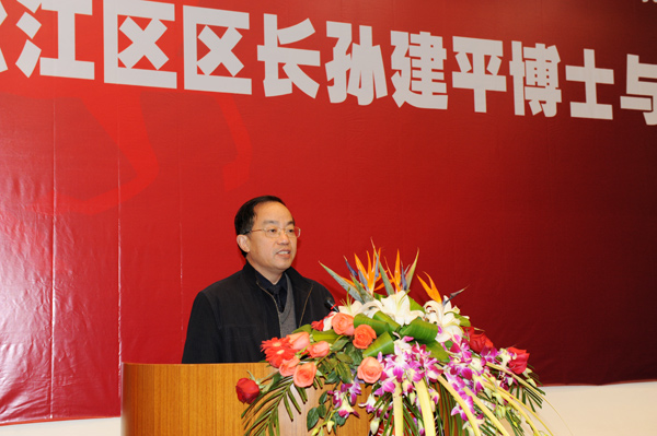 活动在热烈的气氛中进行,上海市松江区区长孙建平博士首先向大家做了题为“面向未来的城市崛起——松江的召唤”的精彩报告。从历史积淀到未来规划、从民生环境到政府决策,松江区的美好发展蓝图一步步生动地呈现在大家面前。场内欢笑不断、掌声连连,孙区长的演讲深深感染了在场的每一个同学。交流互动环节来自于各学院的东华学子发言踊跃,就松江大学城的人才支持政策、如何提高自身竞争力等方面问题和区长做了面对面的交流,孙区长也从自身的成长和求学经历出发,亲切向学子们提出建议,鼓励大家在把握书本知识的同时注重增长社会阅历,掌握学习方法。
