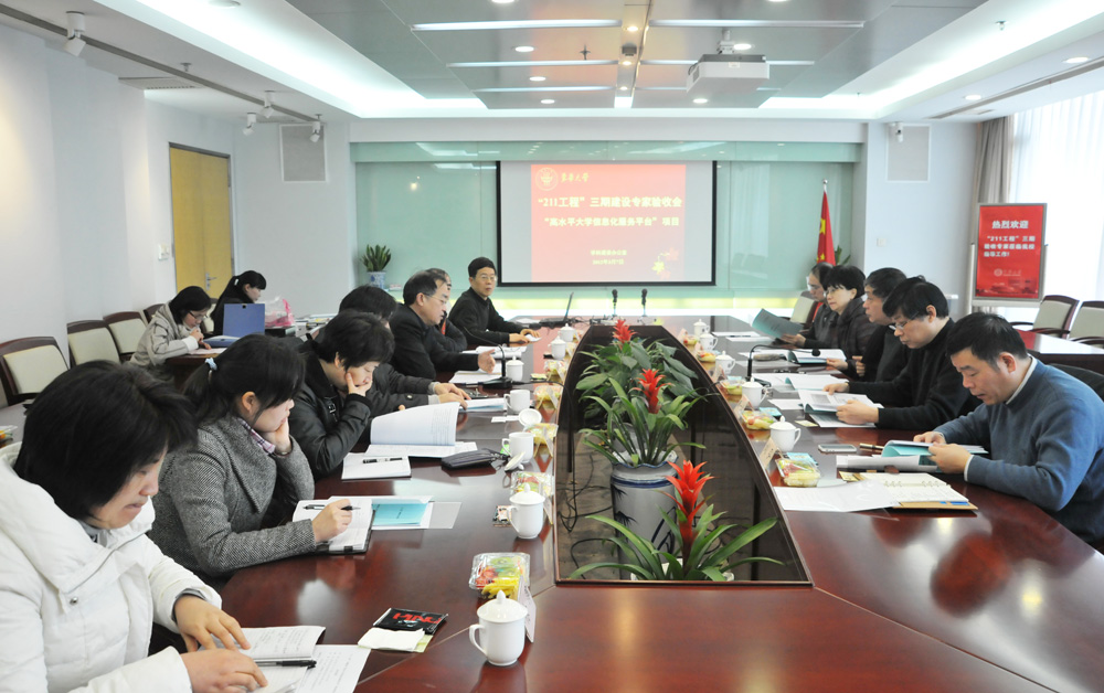 3月7日,我校在松江校区图文信息大楼第二会议室召开“211工程”三期建设子项目“高水平大学信息化服务平台”(以下简称“信息化服务平台”项目)校外专家验收会,邀请来自上海市教委、上海交通大学、复旦大学、上海财经大学、上海社科院等单位相关领域专家对我校“信息化服务平台”项目进行评审与验收。宋立群副校长出席验收会,验收会由学科办主任徐洪耀教授主持。信息化办公室主任曹奇英、副主任徐萍、资产管理处副处长陈加龙、纪委监审处副处长张美芬、学科办副主任刘建树及信息化办公室、学科办等相关工作人员与会。