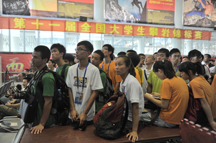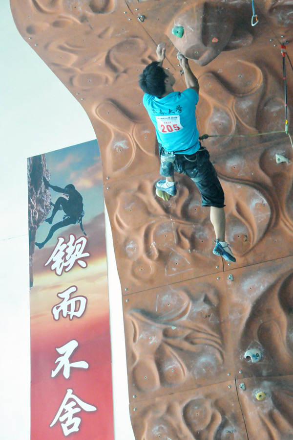 7月26日上午,由中国大学生体育协会攀岩分会主办、我校作为主席单位承办的第十一届全国大学生攀岩锦标赛在松江校区体育馆开幕,这也是该项赛事首次进驻上海。来自北京大学、香港大学、澳门大学、东华大学等48所高校的404位在校生参加了本次比赛,创下历届全国高校攀岩赛事之最。在为期4天的比赛中,运动员们将分列“普通高校组、体育院校组、专业组”参与难度赛、速度赛、攀石赛和团体赛等项目的角逐。攀岩运动一直是户外运动的半壁江山,是一项集健身、娱乐、竞技于一体的极限运动,被称为“峭壁上的芭蕾舞”,近年来在各高校以“俱乐部、学生社团、选修课”等形式得以推广,赢得学生喜爱。大赛吸引了上海电视台、中国新闻社、解放日报、新民晚报、东方网等众多媒体现场报道。