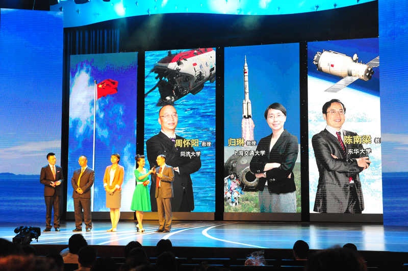 (注:2013年上海市庆祝教师节主题活动现场,陈南梁教授(右一)接受采访)