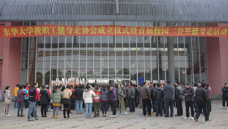 12月24日下午,东华大学教职工健身走协会成立仪式在松江校区体育馆北门举行。校党委副书记、纪委书记罗仪华,副校长宋立群出席仪式。随后,首届校园三公里健身走活动拉开帷幕,我校两百余名教职工参与了此次活动。