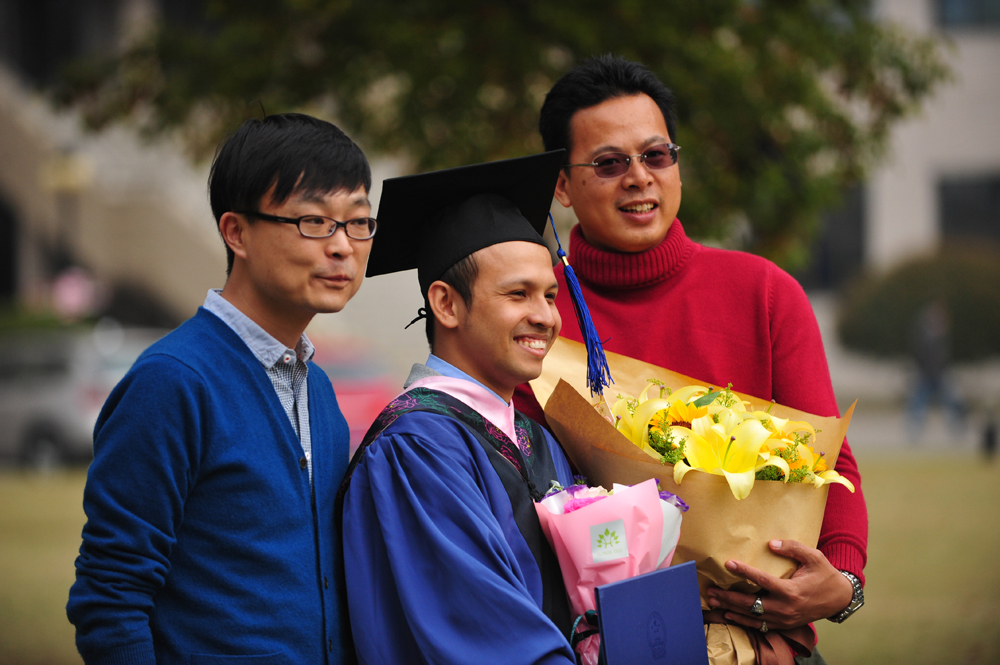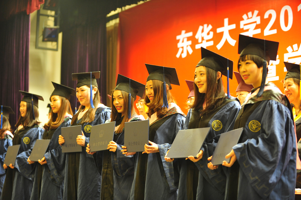 3月26日,东华大学2014届研究生毕业典礼暨学位授予仪式在松江校区锦绣会堂和延安路校区三教二楼分别举行。147名博士、1023名硕士顺利毕业,获得学位。
