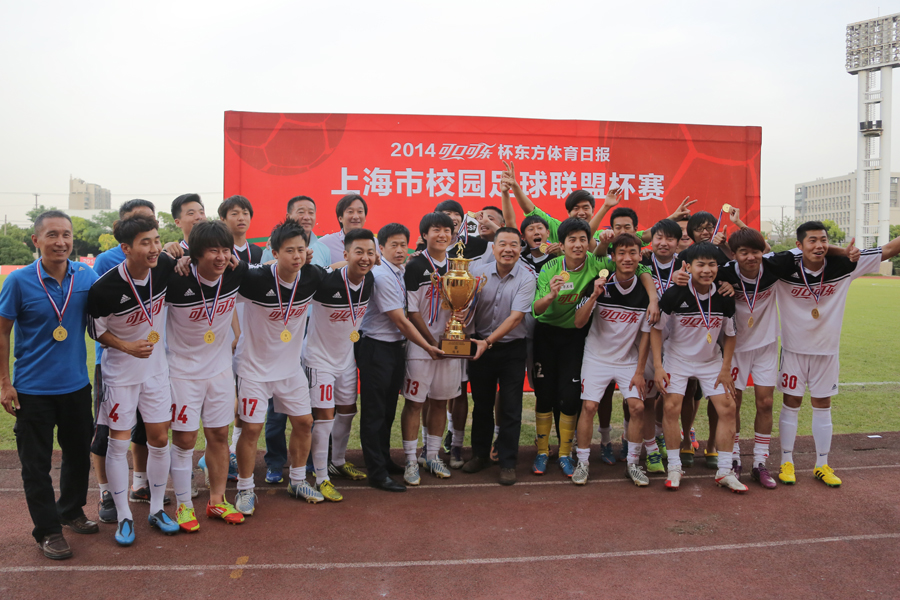 5月30日,2014上海市校园足球联盟杯赛决赛举行,经过激烈拼搏,我校足球队以点球5:4,总比分7:6的成绩战胜同济大学足球队,成功捧回冠军奖杯。