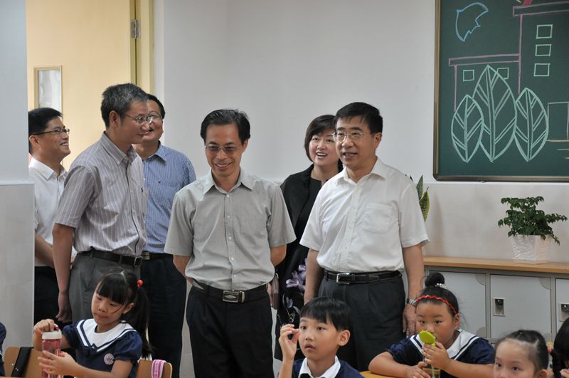 9月1日,东华大学附属实验学校(简称“东华附校”)喜迎开学,我校校长徐明稚和松江区区长俞太尉一行来到学校新校舍,走访了教学楼、实验楼、体育场馆、教师办公室、食堂等校园各处,了解校舍建设和开学情况。