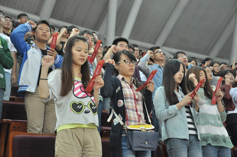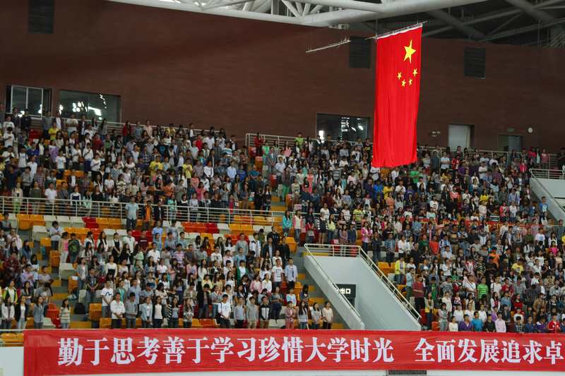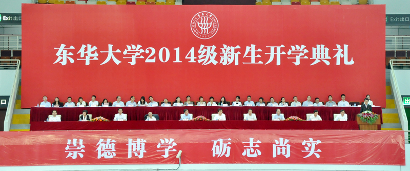 9月19日下午,东华大学2014级新生开学典礼在松江体育中心冰球馆隆重举行,5674位风华正茂、英气勃发的东华大学新学子共聚一堂,共同见证梦想从东华起航。