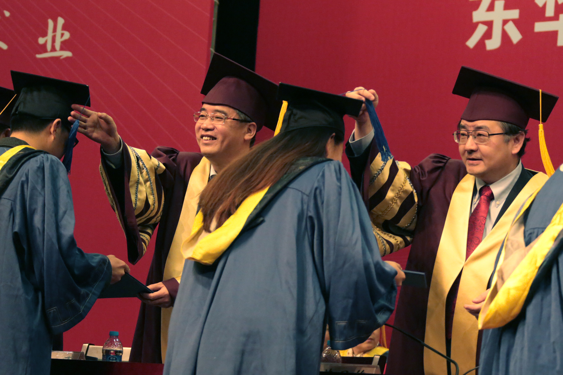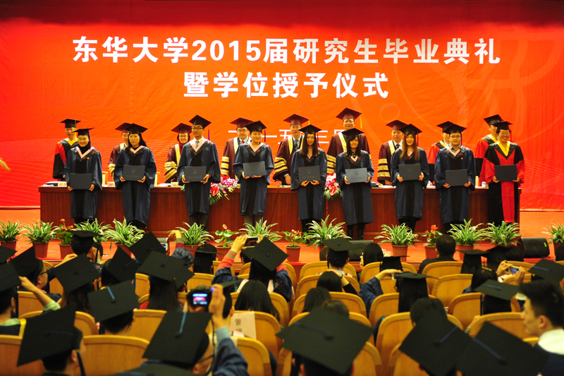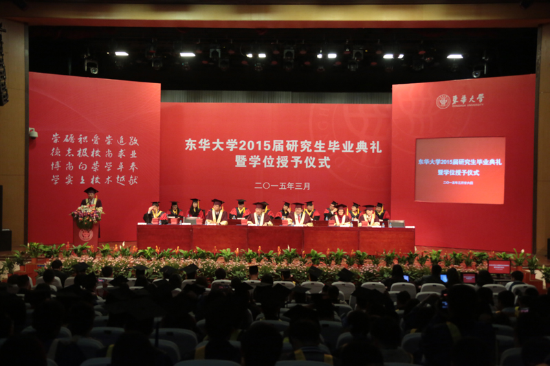 3月26日,东华大学2015届研究生毕业典礼暨学位授予仪式分别在松江校区锦绣会堂和延安路校区三教二楼报告厅举行。1173名研究生顺利毕业,从东华启程,奔赴未来。