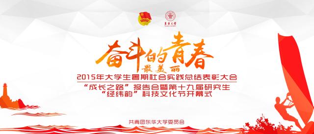 活动名称:2015年东华大学大学生暑期社会实践总结表彰大会、2015年“成长之路”主题报告会暨第十九届东华大学研究生“经纬韵”科技文化节开幕式
