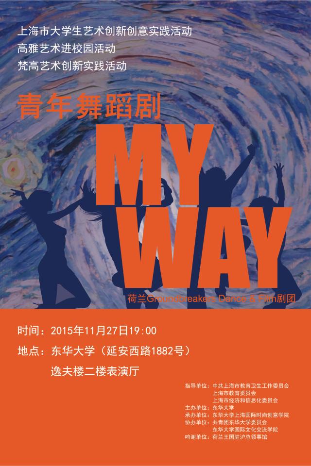 “MY WAY” 是用特殊的舞蹈方式表现梵高的艺术经历和生活:电影投影和专业舞者互动,创造艺术跨界形式的独特表演艺术。现代舞融入当下时尚舞蹈风格并与电影投影融合一体。“我的路”讲述梵高的人生故事:他,进行艺术创作时的强烈欲望和驱动;他,作为现代艺术家作出的牺牲和创新。此外还有,日本浮世绘和印象画派对他的影响,他与终生资助他绘画的弟弟提奥•梵高的兄弟情深,他与女朋友的爱恨纠葛,他与法国著名画家保罗•高更的复杂友谊关系。“我的路”——将您带入梵高丰沛的感情生活,并让您见识梵高如何达到他艺术上的独具一格。