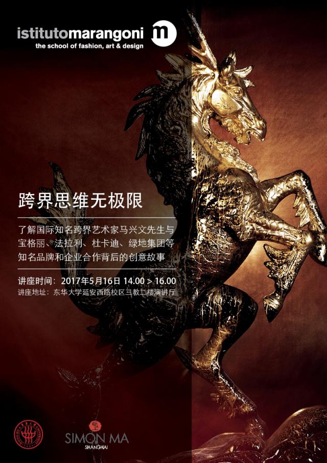 主讲人简介:马兴文(Simon Ma)被美国Bloomberg TV称为“21世纪中国最著名艺术家”。2012年荣获中意文化大使,2014年当选“香港十大杰出青年”、“香港赛马会艺术大使”,任米兰世博会中国馆及中国企业馆艺术总监,受聘为我校客座教授;2015年受聘为上海视觉艺术学院客座教授;2016年任Istituto Marangoni艺术学院艺术大使、Grand Ricci法国利氏辞典推展协会艺术文化大使等。他的“墨·笔·心”系列展览参加第55届威尼斯双年展,其中最为出名的雕塑《舞动的水滴》在意大利皮萨尼宫展出。其艺术作品在罗马当代艺术馆、美国迈阿密Patricia 和Phillip Frost艺术博物馆、意大利外交部、国家大剧院、上海世博会意大利馆、上海当代艺术博物馆(MOCA)、浙江省美术馆、徐悲鸿艺术馆、宁波1844当代艺术馆、上海中国现代国之宝艺术馆、台湾高雄艺术博物馆等展出或被收藏。马兴文是第一位在西湖上展出作品的艺术家,其创作的“22.8米”巨大水滴吸引了现场观众的浓厚兴趣,并做出小型水滴装置与小朋友互动,亲近自然。多年来,马兴文以跨界艺术家身份与多个领域国际品牌合作,以色彩和书法融入宝格丽12+1款限量陀飞轮系列手表,将新创作的龙马文字用中国书法的呈现方式,带入法拉利20周年的20辆限量款458龙马跑车、20支恒宝龙马限量版手表、杜卡迪Daviel功夫限量版、兰博基尼、保时捷、周大福、人头马1898和芝华士18等。
