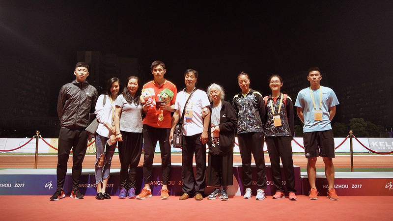 (我校撑杆跳运动员和教练员团队)