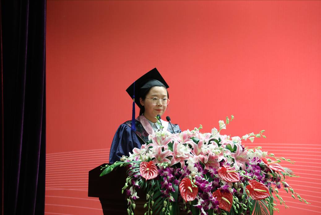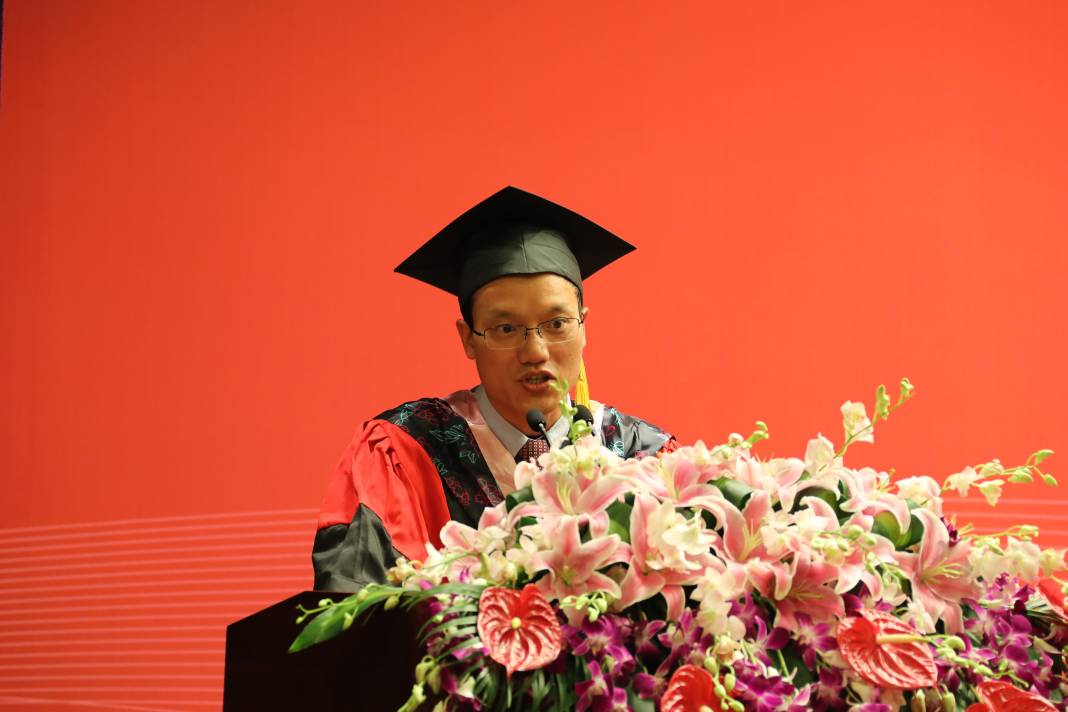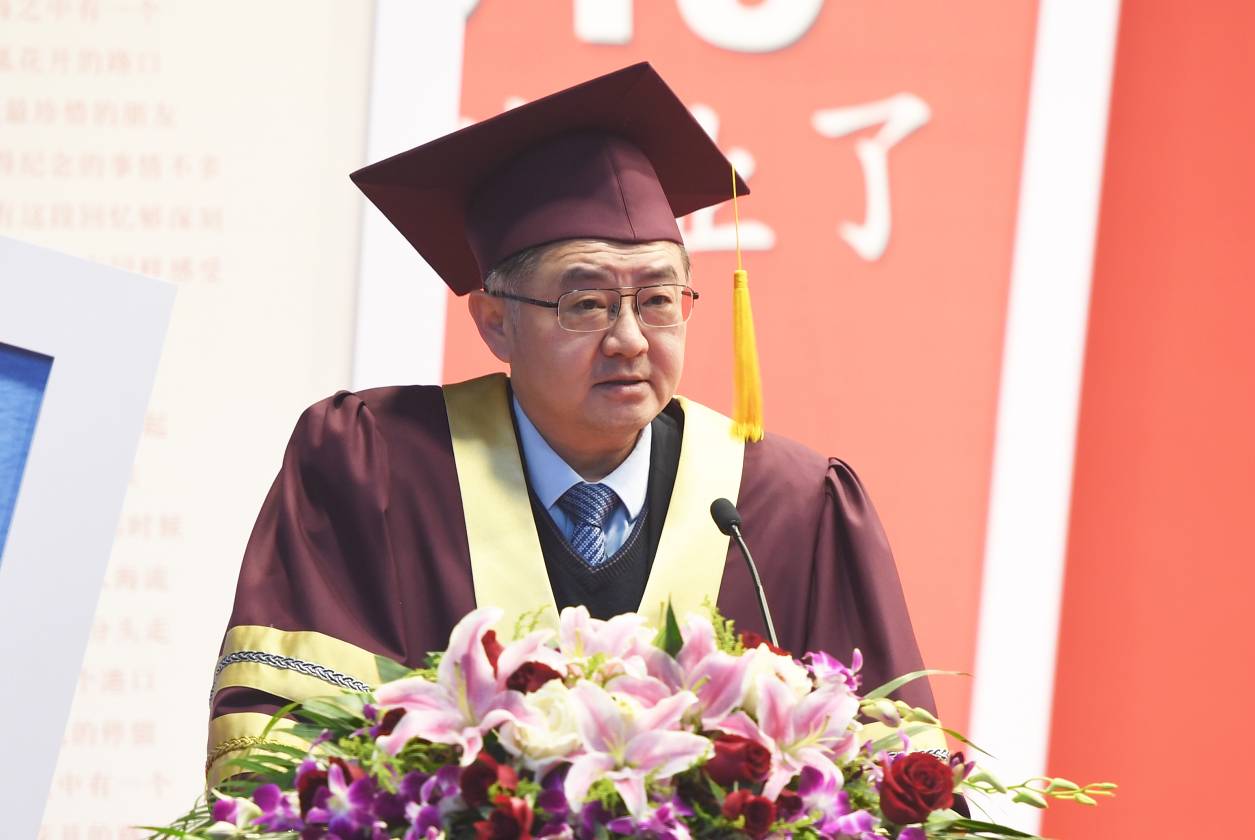 蒋昌俊在典礼上做《行远思恩 筑梦远航》的讲话,他代表学校向圆满完成学业、踏上人生新旅程的毕业生表示祝贺,并对毕业生深情寄语。一是要以坚定信念来追逐梦想,成就崇高的事业。东华大学自建校以来,始终与时代发展同向同行,立足中国特色,瞄准世界一流,每每在国家重大战略发展进程中,都能看到东华人为国服务的身影。作为东华学子,要牢记,崇高的事业不是以金钱来衡量,而是用责任与担当来成就的。希望同学们通过不懈努力成长为国家重点行业的中流砥柱,努力成为新领域的开拓者、新技术的发明者、新知识的创造者,担负起历史和时代赋予的崇高使命。二是要以实干精神来践行梦想,书写有意义的人生。人生之路从来没有“最优解”,步步最优、未必全局最优,精打细算不如埋头实干。希望毕业生们始终秉承“崇德博学,砺志尚实”的校训精神,把梦想当做最宝贵财富,练就担当的“宽肩膀”、成事的“真本领”;做事不仅从自身需求出发,更要回应国家和社会的期许,胸怀天下,上下求索,在勤奋实干中肩负时代使命,奋勇向前。三是要以深厚情怀来坚守梦想,勇做新时代奋斗者。毕业后,面对选择多元、竞争激烈的社会,希望同学们不要忘记蕴含在东华人灵魂中的气质,要耐得住生活繁琐,扛得起工作重担的厚重,要有“经天纬地、锦绣中国”的担当,无论身在何地,不论处于顺境还是逆境,都能秉持初心、坚守梦想的情怀。最后,蒋昌俊希望大家能以国家富强、人民幸福为己任,把爱国情、强国志、报国行融入到中国特色社会主义的伟大实践中,始终坚持把人民的利益放在首位,拥护党的领导,坚定共产主义信念,拥有担负起构建人类命运共同体的气魄和实力,把事业写在祖国辽阔的土地上,把成长写在国家、民族灿烂的未来!