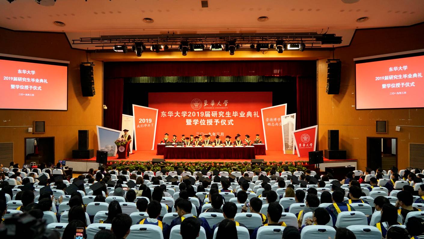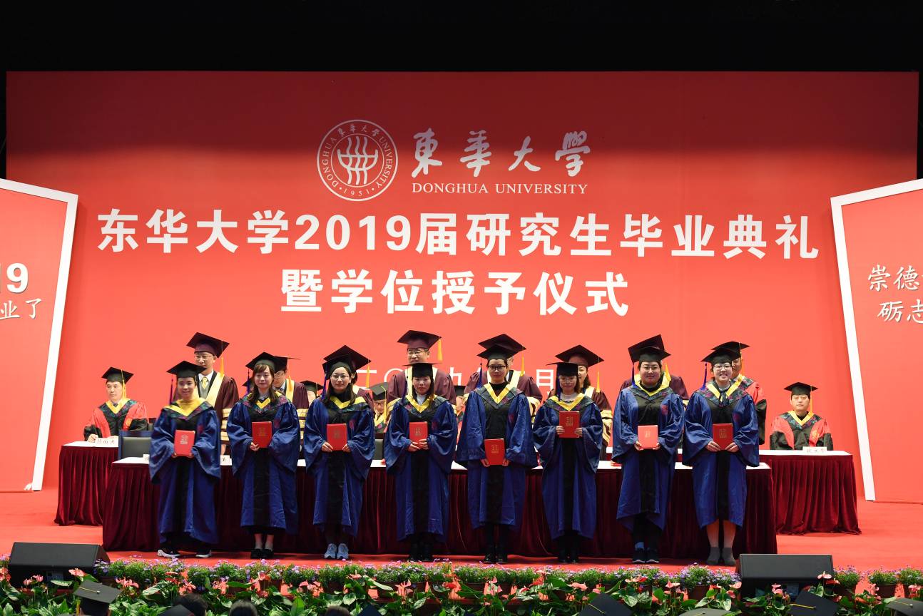毕业典礼上,纺织学院宋岩和服装与艺术设计学院田志伟作为在校研究生代表为即将毕业的学长学姐送上祝福。校学位评定委员会秘书长、研究生部主任俞昊宣读校学位评定委员会决定。与会校领导和各学院负责人代表依次为1299名毕业生颁发学位证书并行拨穗礼。