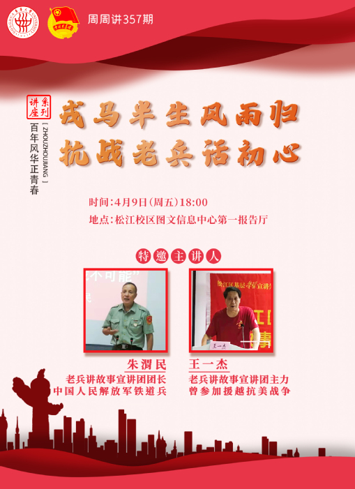 内容简介:本次“百年风华正青春”系列周周讲暨团员青年学党史第三讲邀请松江老兵宣讲团走进校园,以《戎马半生风雨归,抗战老兵话初心》为主题讲述红色故事,传承红色基因。