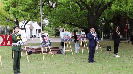 服装与艺术设计学院辅导员宋明亮和东华大学国旗护卫队延安路校区国旗班宣讲团的成员通过“坚持与祖国同行,绽放青春绚丽之花”情景党史教育微课,讲述百年峥嵘岁月里党在奋斗历程中形成的脱贫攻坚精神和伟大抗疫精神。宋明亮结合自身教育扶贫经历,引导学生将小我融入大我,为建党百年和建校70周年献礼。宣讲团的同学分享2020年感动中国人物张桂梅的故事,讲述我校定点扶贫的40余位云南盐津籍学生从大山走进东华、用知识改变命运的故事,鼓励同学用行动践行崇高理想和追求。国旗班队长张子巍在国旗下向全体师生发出全民国家安全教育的倡议,呼吁大家树立忧患意识,增强责任感与使命感;提高法治意识,做知法、守法公民;从自身做起,自觉做国家安全守护人。