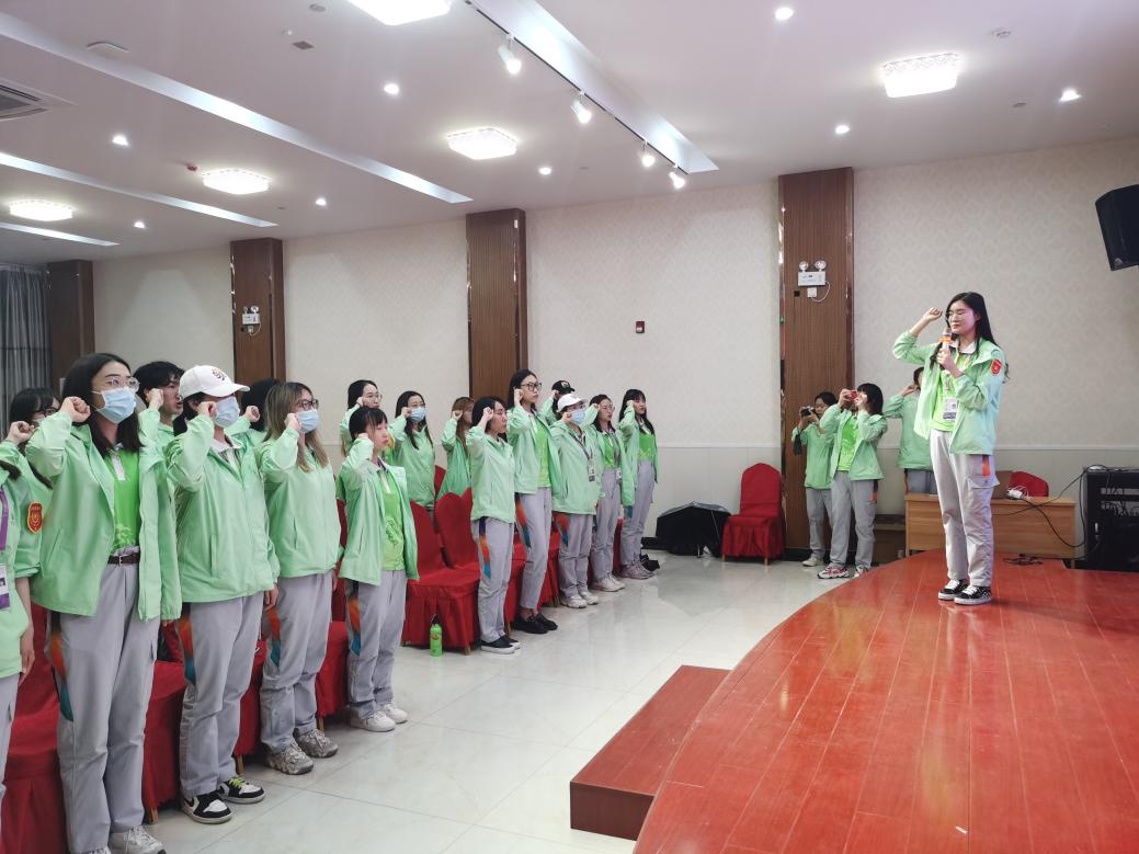 志愿者代表陆凌雨向同学们介绍了第十届中国花卉博览会的举办背景及时代内涵,以花博会志愿者主题曲MV《我的家是花》,带领志愿者一起回顾了开园以来的工作内容并分享交流服务心得,勉励志愿者们不忘初心,以良好的精神面貌和专业水平为花博会保驾护航。志愿者们结合“寻访红色印记”主题活动,集体学习了园内五处红色景点,分别是寓意“两个一百年”的两朵白玉兰、浙江园中的浙江南湖红船模型、江西园中的星火模型、上海园中的石库门建筑、陕西园中的“延安精神永放光芒”模型。通过讲述这些景点背后的党史故事,让同学们感受到中国共产党在带领中国从站起来到富起来到强起来的伟大征程。现场全体师生共同重温入团誓词,坚定服务信念。