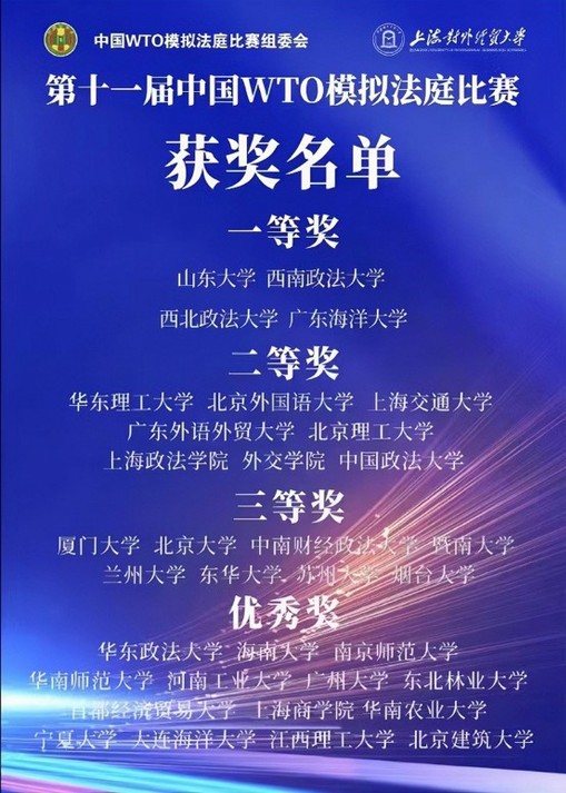 据了解,中国WTO模拟法庭比赛旨在通过模拟WTO争端解决机制专家组程序,推进高校学生对WTO规则的掌握与运用,是我国高素质涉外法律服务人才培养的重要依托,也是我国在该领域具有权威性和影响力的比赛。