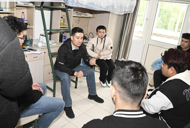 管院少数民族学生辅导员努尔顿负责带的预科班有几十名少数民族学生,他直接到了男生宿舍,找同学们谈心。努尔顿说,虽然才开学,但是上课的时候感觉同学们活力不足,毕竟上了那么久网课,户外活动也少。“我今年想推进的工作是争取让每一个同学都能根据个人兴趣掌握一项小技能,摄影、摄像、表格制作啥都行,一项擅长的技能能让少数民族的学生更好地融入整个学校的学习生活氛围,这点很重要”,努尔顿说。