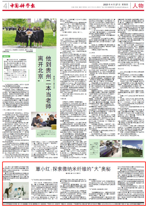 作为此次获奖名单中纺织科研领域唯一的青年女科学家,覃小红对未来中国纺织科技发展充满了信心和干劲儿。这种对纺织学科的热爱和对科学研究的坚持激励着她在科研道路上一路向前,用实际行动为建设中国纺织强国贡献巾帼力量。(作者: 张双虎 李晨阳 来源:中国科学报 时间:2023-4-27)