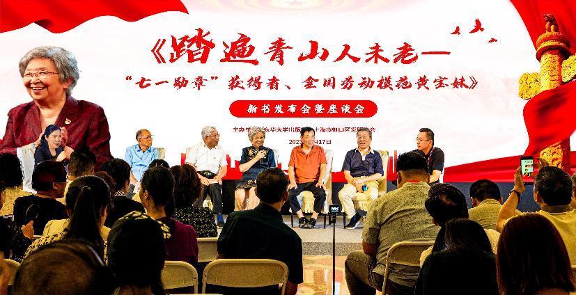 书中“主人公”到场互动、“00后”娓娓讲述劳模故事、书迷上演“大型追星现场”……8月17日,《踏遍青山人未老——“七一勋章”获得者、全国劳动模范黄宝妹》新书发布会暨作者座谈会在上海展览中心举行。此次活动由我校出版社携手上海市虹口区发明协会共同主办,这也是2023上海书展的特别活动之一。