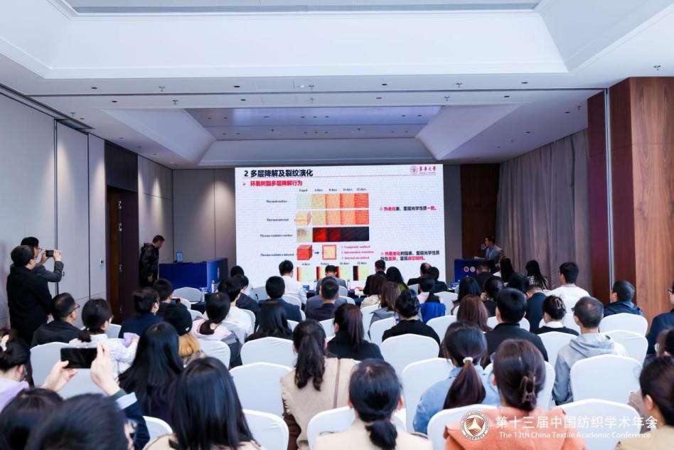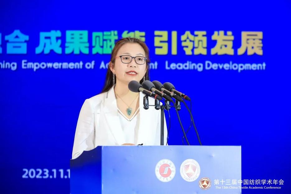 11月10-12日,由中国纺织工程学会主办的第十三届中国纺织学术年会在江苏苏州举行。本届学术年会以“学产融合、成果赋能、引领发展”为主题,设置1个主会场和13个分会场。中国纺织工业联合会及相关专业协会、纺织工程学会领导,全国高等院校、科研机构、企事业单位等代表线下参会。我校纺织学院院长覃小红在主会场作主旨报告。