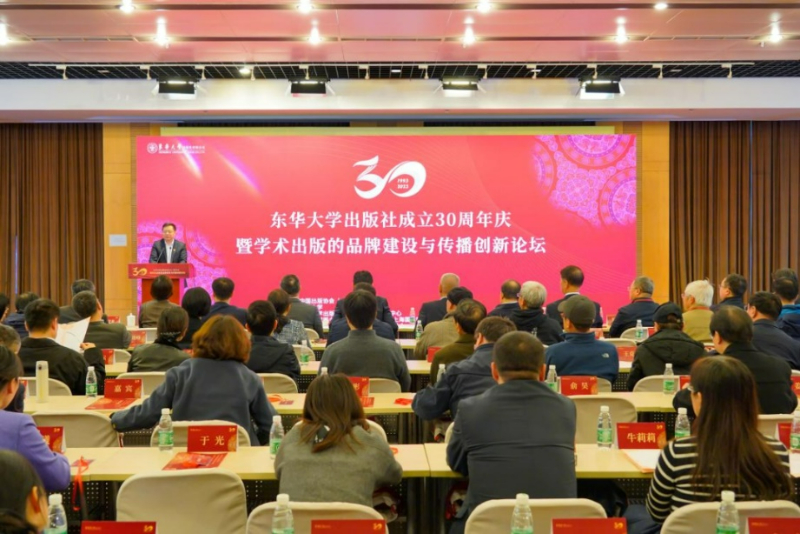 11月15日,东华大学出版社成立30周年庆暨学术出版品牌建设与传播创新论坛在东华大学延安路校区举行。中国出版协会理事长邬书林,中国图书评论学会会长郭义强,中国出版协会常务副秘书长吴宝安,上海市委宣传部副部长高韵斐,上海出版社经营管理协会理事长、上海世纪出版集团副总裁彭卫国,中国纺织服装教育学会副会长纪晓峰,东华大学党委书记刘承功,东华大学副校长赵震等嘉宾出席。