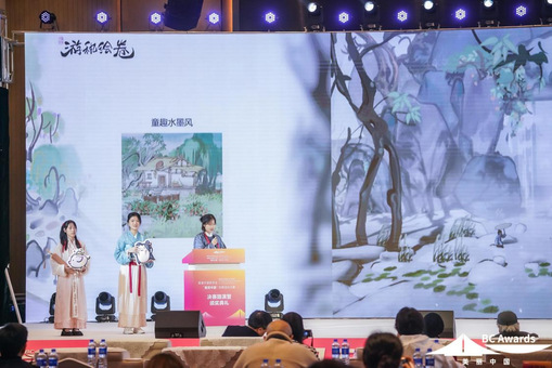 除“神仙打架”的分赛道路演外,现场还布置了有趣有料的设计作品展示区,与会人员既能根据作品“玩味梅城”地图导览手册“云游”严州,看到别具一格的“龙山书院诗人”IP形象,又可了解“茶花游园-之江花茶文化体验中心”等环境空间设计,还能看到将传统手工艺缠花与非纺织材料和鱼骨相结合的服装设计。