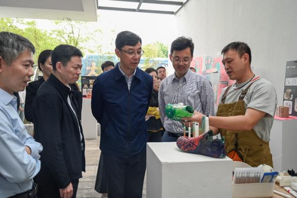 党委书记刘承功,党委副书记项延训,广富林街道党工委书记姜山、学校相关职能部门、学院负责人以及相关街镇负责人、上海艺术百代美术馆馆长刘子惠等共同观展。