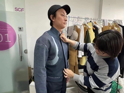 李浩然身着的礼服在中山装的款式基础上加入了运动风格元素。它的主要面料来源于帝酷适(Dickies)以及丝黛拉麦卡妮(Stella McCartney)的捐赠的实践教学材料。