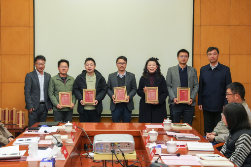 (刘承功、李成龙为青年教师赠送“案边静思框”)
