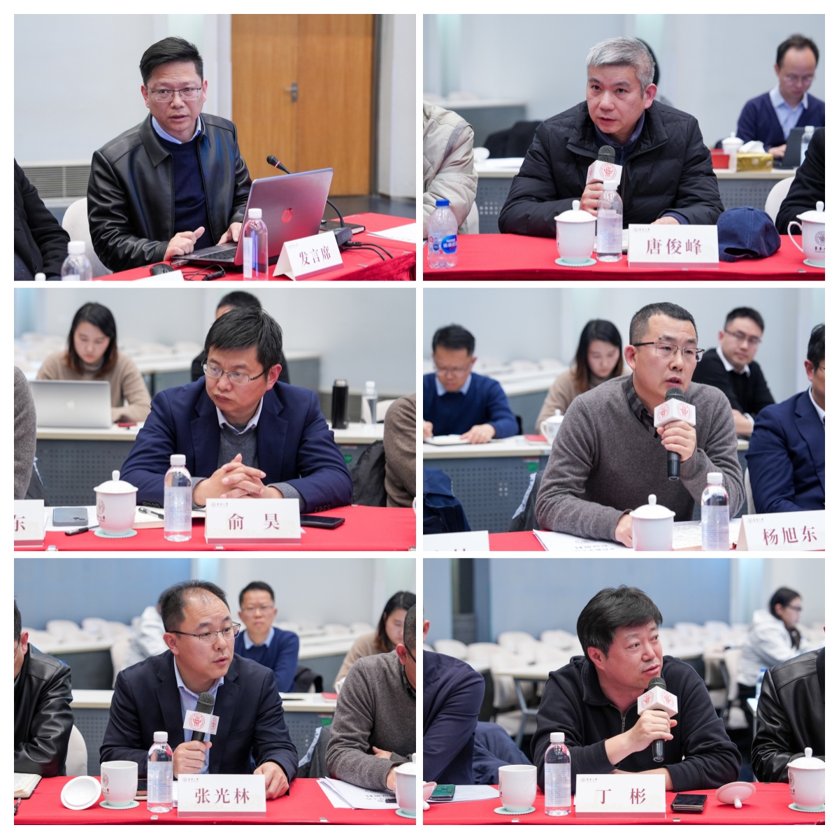 人事处处长张耀鹏、后勤服务中心主任唐俊峰、研究生院常务副院长俞昊、教务处处长杨旭东、人才办主任张光林和科研院院长丁彬围绕重点工作交流发言。