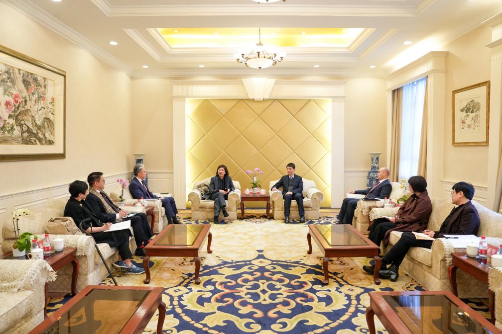 项延训对杨敏贤一行到访表示欢迎。他表示,东华大学作为国家“双一流”建设高校,始终坚持服务国家战略和经济社会高质量发展,助力行业提质增效。香港纺织及成衣研发中心作为新型研发平台,特色鲜明,与东华大学的优势学科和发展方向高度契合。他指出,双方在纺织及成衣关键技术、纺织材料循环利用、先进纤维材料、智能纺织品等前沿领域具有广阔的合作前景。希望以此次交流作为新起点,在科研攻关、概念验证、成果转化等方面加强合作,为服务国家“双碳”战略、推动产业变革、助力沪港经济社会高质量发展做出更大贡献。
