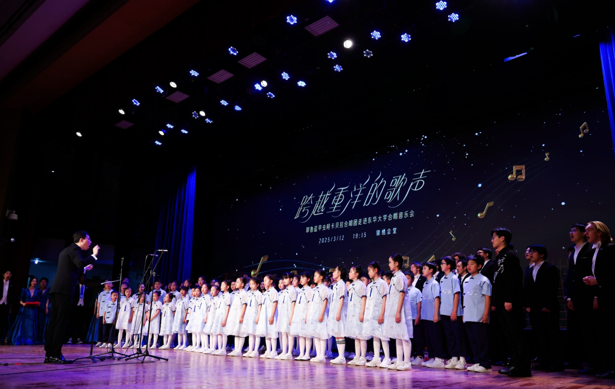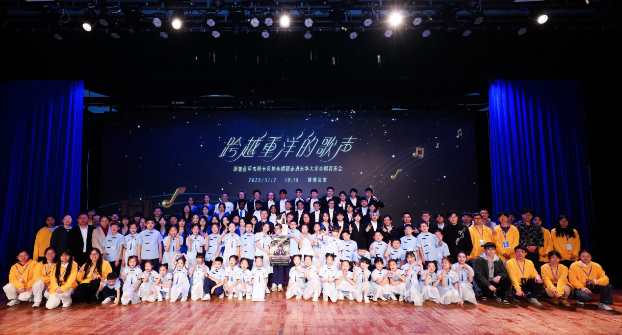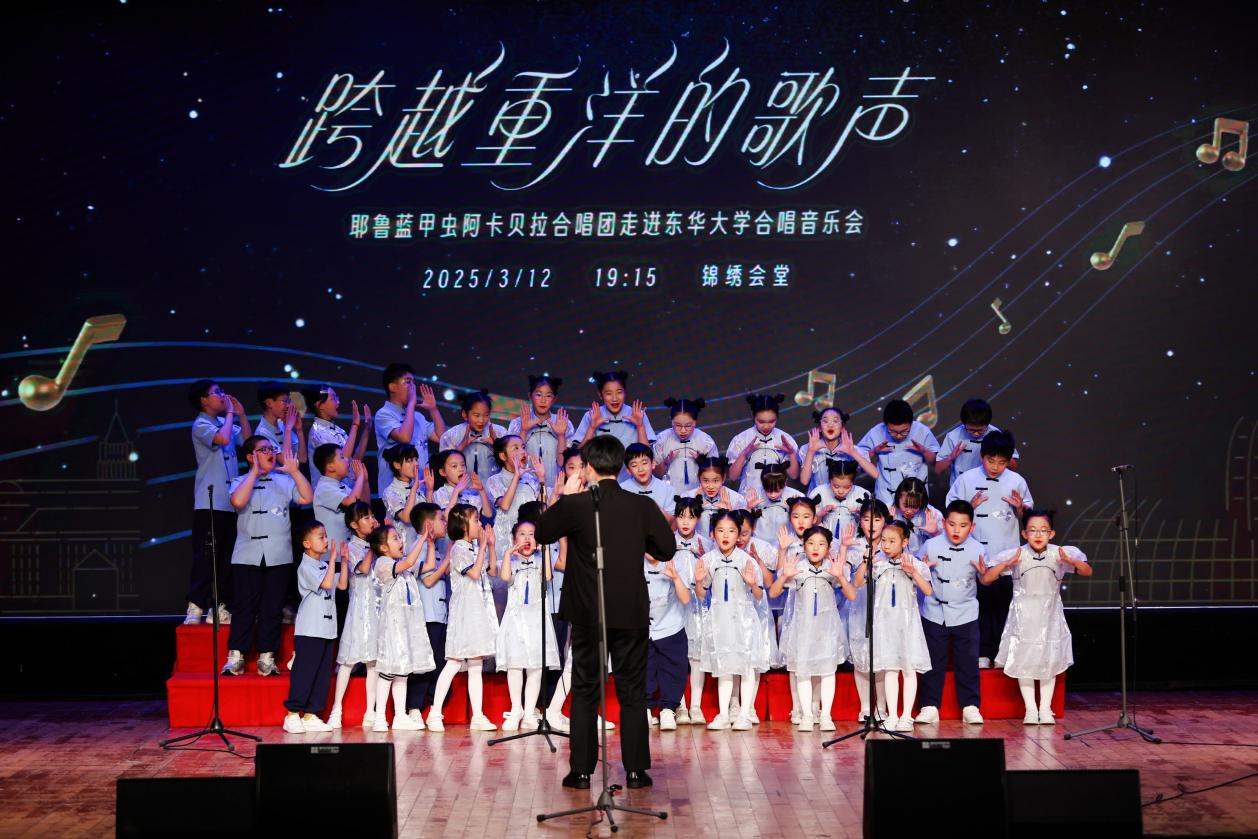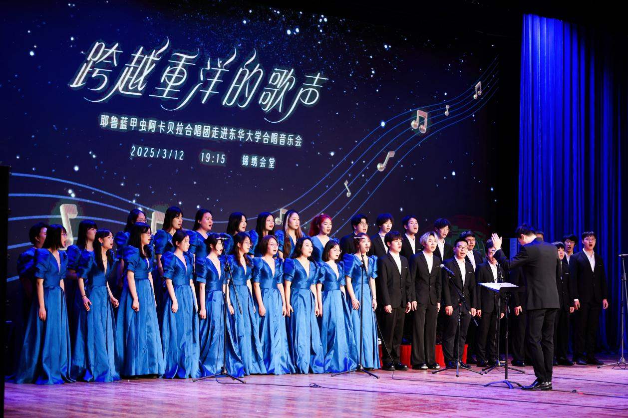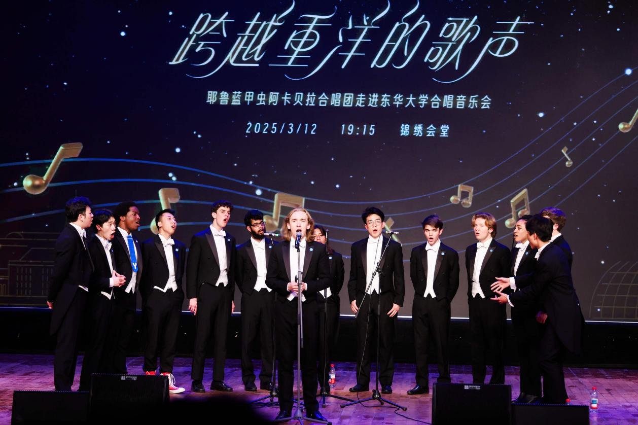 3月12日晚,东华大学松江校区锦绣会堂内灯光闪耀、掌声雷动,一场由耶鲁大学蓝甲虫阿卡贝拉合唱团与东华大学及附校师生共同带来的音乐盛宴——“跨越重洋的歌声”精彩上演,党委副书记李成龙,副校长刘淑慧、陈革,以及900余名师生共赴这场音乐之旅。通过音乐这一无国界的语言,中美青年在文化交流中碰撞出别样火花,让高校美育绽放独特魅力。