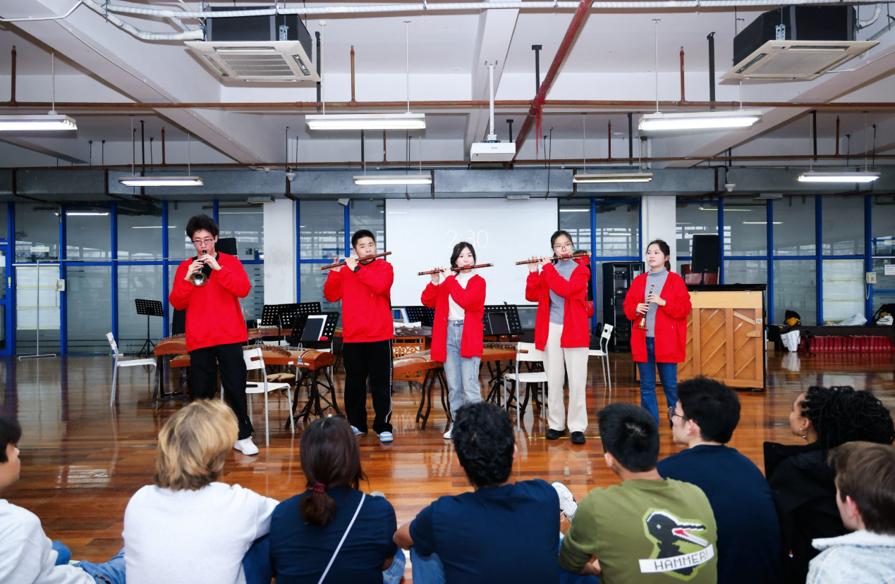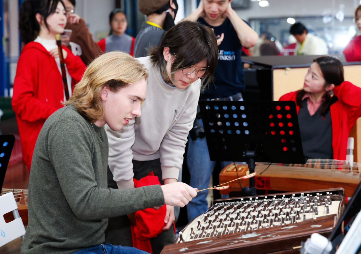 东华大学民乐团成员郭成城表示,“这次与蓝甲虫合唱团的交流,对我们来说是一次非常难得的机会。他们的演唱技巧和舞台表现力都非常出色。能够向他们展示中国的传统文化、民族乐器,我感到非常自豪!”耶鲁大学的美国籍学生Abril说:“一天的活动中,我用音乐与东华大学的同学们结下了深厚的情谊,中国的民族乐器和非遗令我印象极其深刻。”