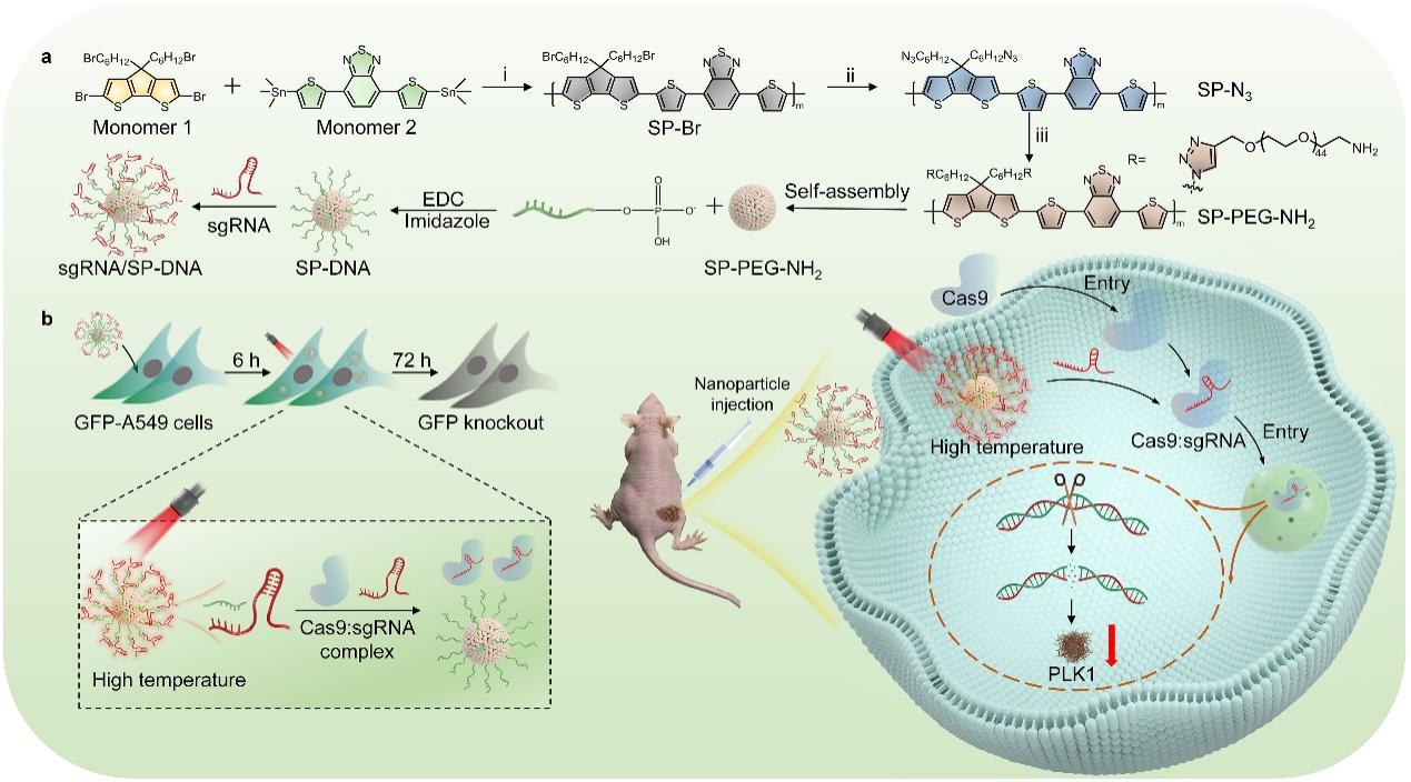 (图3. NIR光响应型有机高分子纳米载体用于CRISPR活性调控和肿瘤基因治疗示意图)