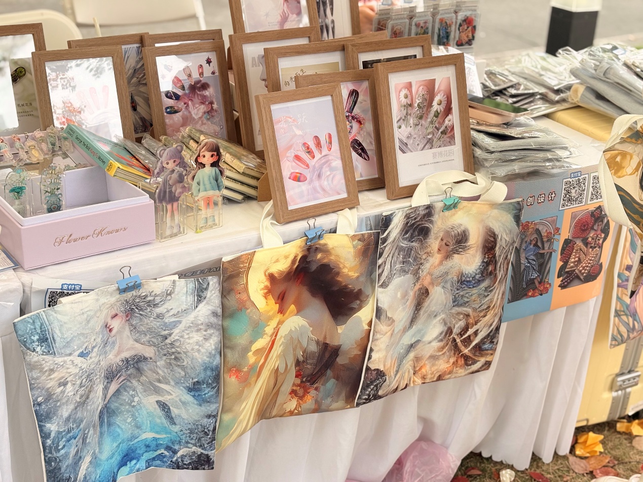 作为本届环东华时尚周的“创意担当”,市集首次全面引入AI技术,开创“智·汇”板块,从摊位布局到视觉标识,从互动设计到作品展示,AI算法与设计师的巧妙结合,让创意市集焕发出前所未有的科技感与艺术感。