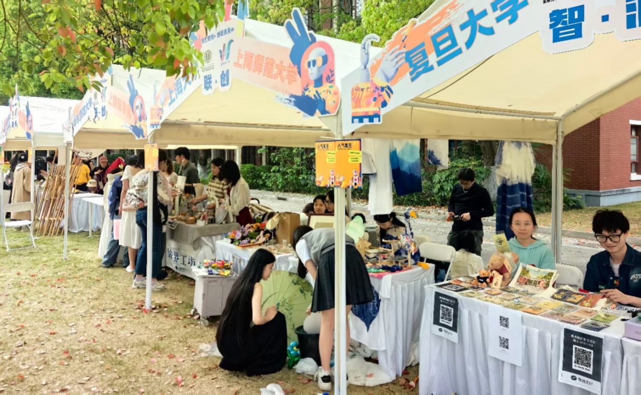 本届创意市集为创意共同体建设搭建了校级联动平台。由东华大学牵头的服饰文化育人联盟自成立以来,始终致力于推动中华优秀传统文化与服饰文化的守正创新,促进文化交流。复旦大学、华东师范大学、上海大学、上海师范大学、上海商学院、上海工艺美术职业学院等联盟高校创意团队入驻,形成“联·创”板块,各成员高校汇智聚力,共同促成沪上青年跨校创意的生动对话。