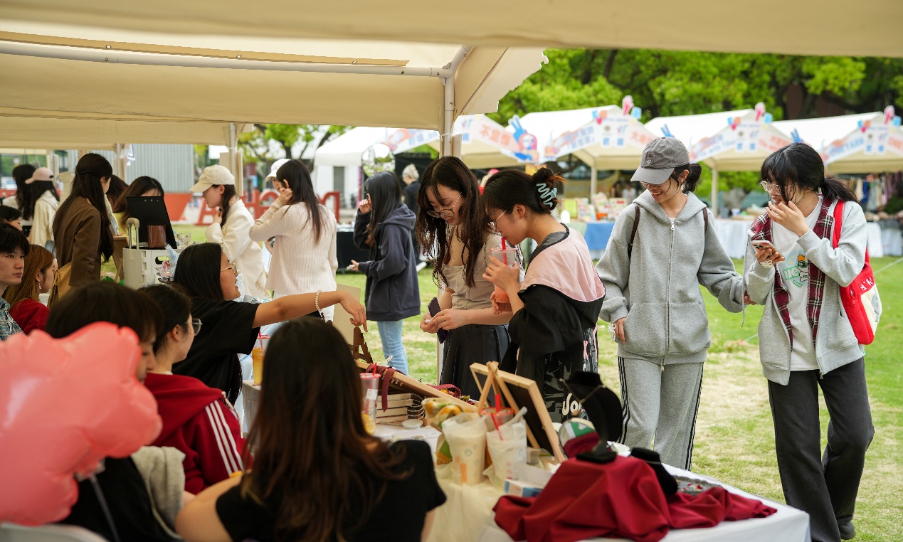7所上海高校服饰文化育人联盟院校加盟,15个尚创汇青年校友创业孵化品牌助力,40余个创意特色摊位各具风格,24组学生系列AI作品成果展惊艳亮相……4月11日,第十六届“智汇时尚+创新未来∞”创意市集在东华大学踏春“开市”啦!
