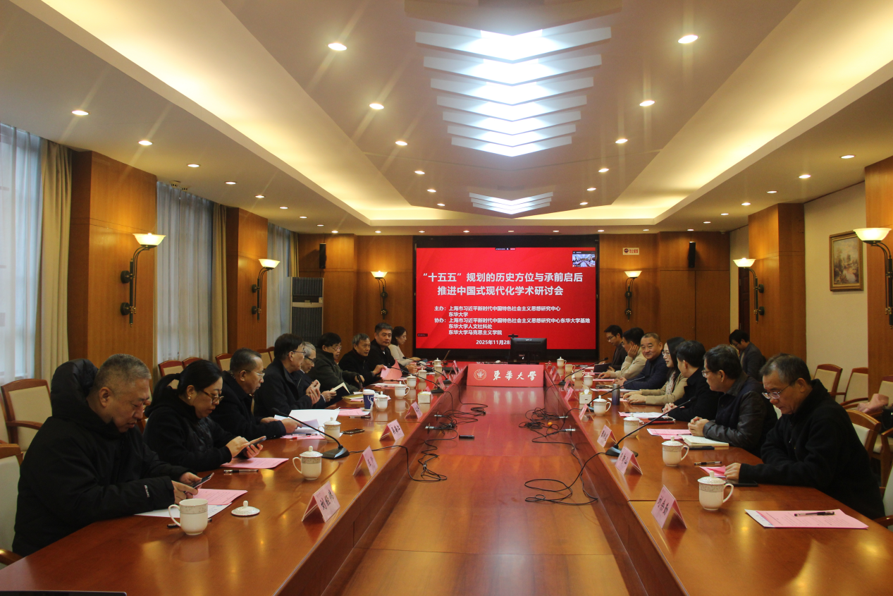 11月28日,“十五五”规划的历史方位与承前启后推进中国式现代化学术研讨会在我校举办。本次研讨会由上海市习近平新时代中国特色社会主义思想研究中心、我校主办,上海市习近平新时代中国特色社会主义思想研究中心东华大学基地、人文社科处、马克思主义学院承办。校党委副书记、马克思主义学院院长王治东,中共上海市委宣传部原副部长、上海社会科学院原党委书记潘世伟出席。我校党委宣传部、人文社科处相关负责人及马克思主义学院师生参会。