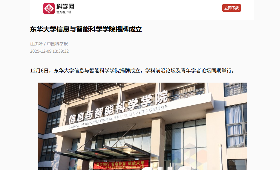 12月6日,东华大学信息与智能科学学院揭牌成立,学科前沿论坛及青年学者论坛同期举行。
