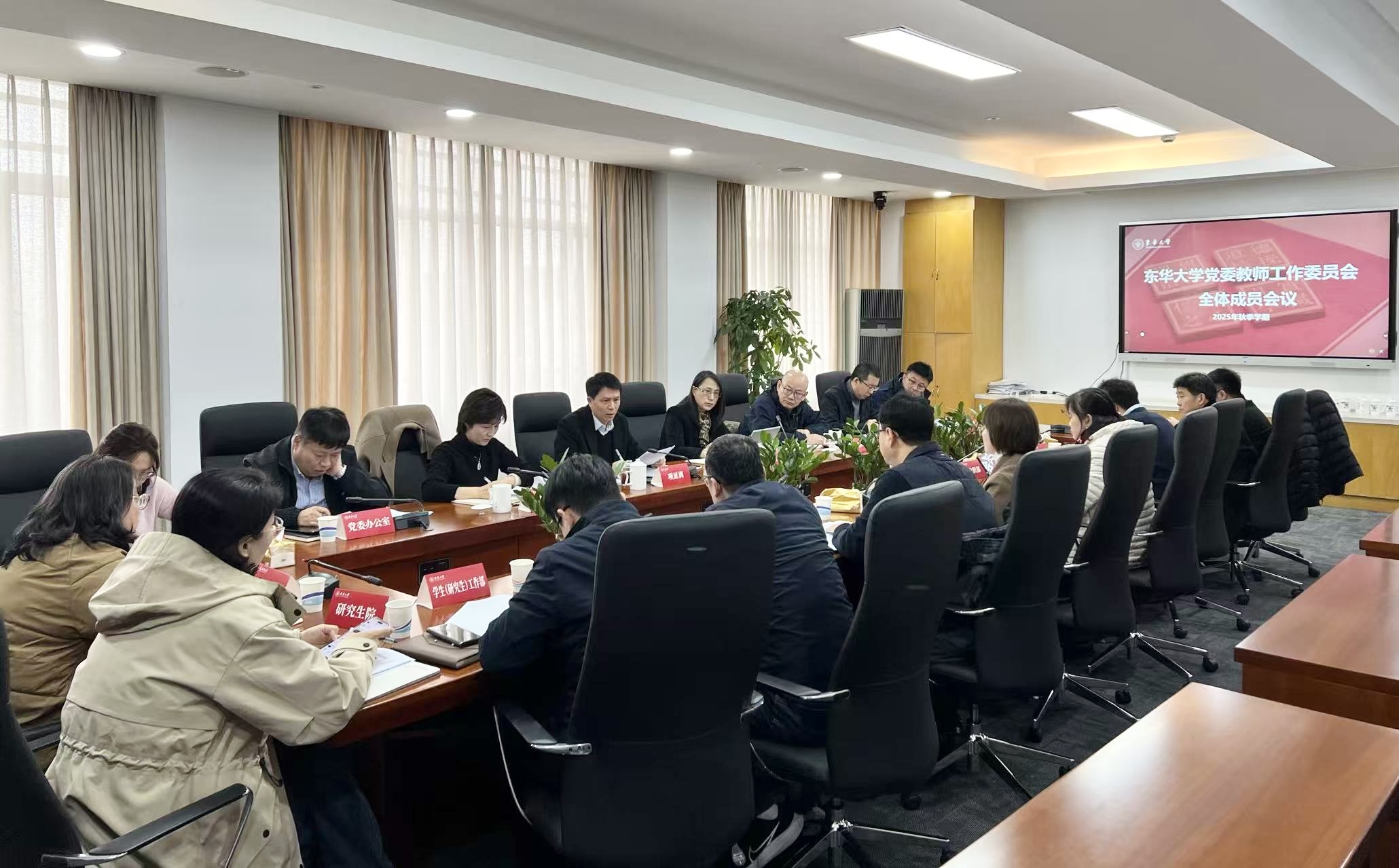 会议听取了党委教师工作部部长张光林就学校关于贯彻落实《普通高等学校教师党建和思想政治工作质量标准(试行)》等文件精神的工作汇报。集体研究审议了《东华大学师德专题教育实施方案》,全体委员结合本部门工作就如何进一步加强和改进学校教师思想政治和师德师风建设工作进行了交流研讨。