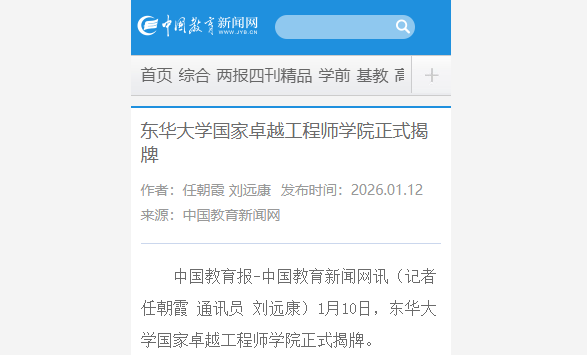 中国教育报-中国教育新闻网讯(记者 任朝霞 通讯员 刘远康)1月10日,东华大学国家卓越工程师学院正式揭牌。
