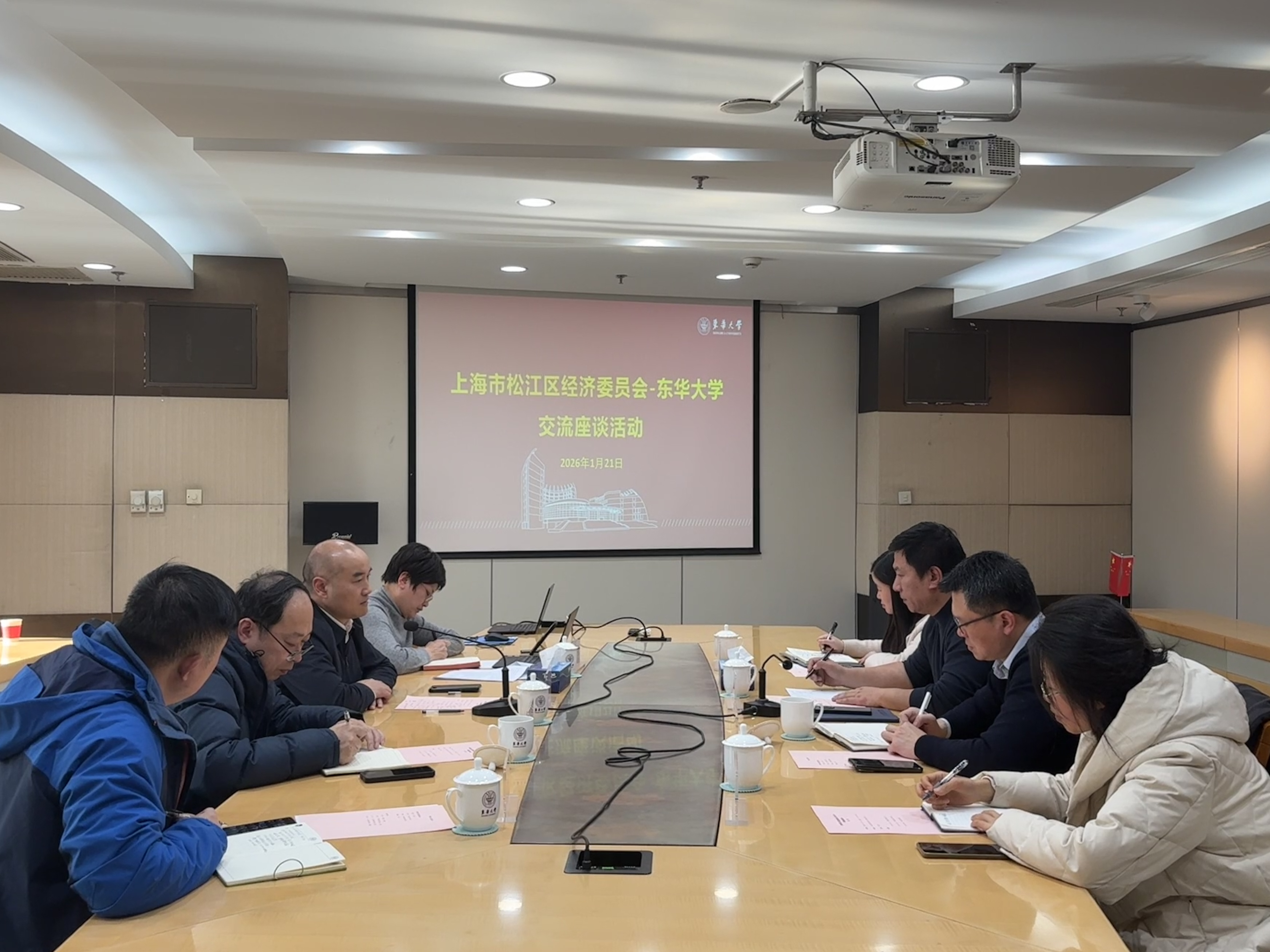 1月21日,上海市松江区经济委员会副主任戴志明一行来校调研交流,副校长陆卫兵出席座谈会。我校科学技术研究院、人工智能研究院相关负责人及教师代表参会交流,产学研合作处处长刘亚男主持会议。