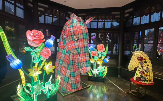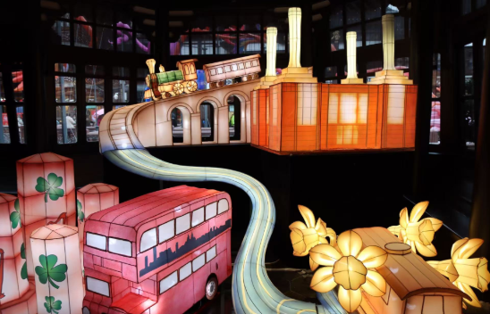交流现场,东华大学学生代表代晨悦、戴飞翎、李昕蔚、张浩扬向斯塔默首相详细介绍了花灯作品的设计理念与创作细节。花灯作品巧妙融入伦敦红色双层巴士、苏格兰格伦芬南高架桥、唐宁街“首席捕鼠官”拉里猫等英伦元素,并结合饰有苏格兰格纹的马头造型,将中国传统花灯工艺与英国文化符号创新融合,作品兼具创意、艺术温度与文化共鸣。