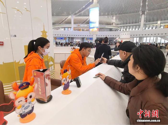 中新网上海2月9日电 (记者 许婧)站内智能导航屏闪烁着实时车次信息,自助售票机前排起长队,拖着行李箱的旅客脚步匆匆……春节脚步日益临近,上海松江站迎来节前返乡客流高峰。在人流交织的车站,一抹亮眼的“橙色”格外醒目——东华大学“小甜橙”志愿服务队身着橙色马甲,带着青春的朝气,用细致入微的行动为万千旅客的平安归途筑牢温暖防线。