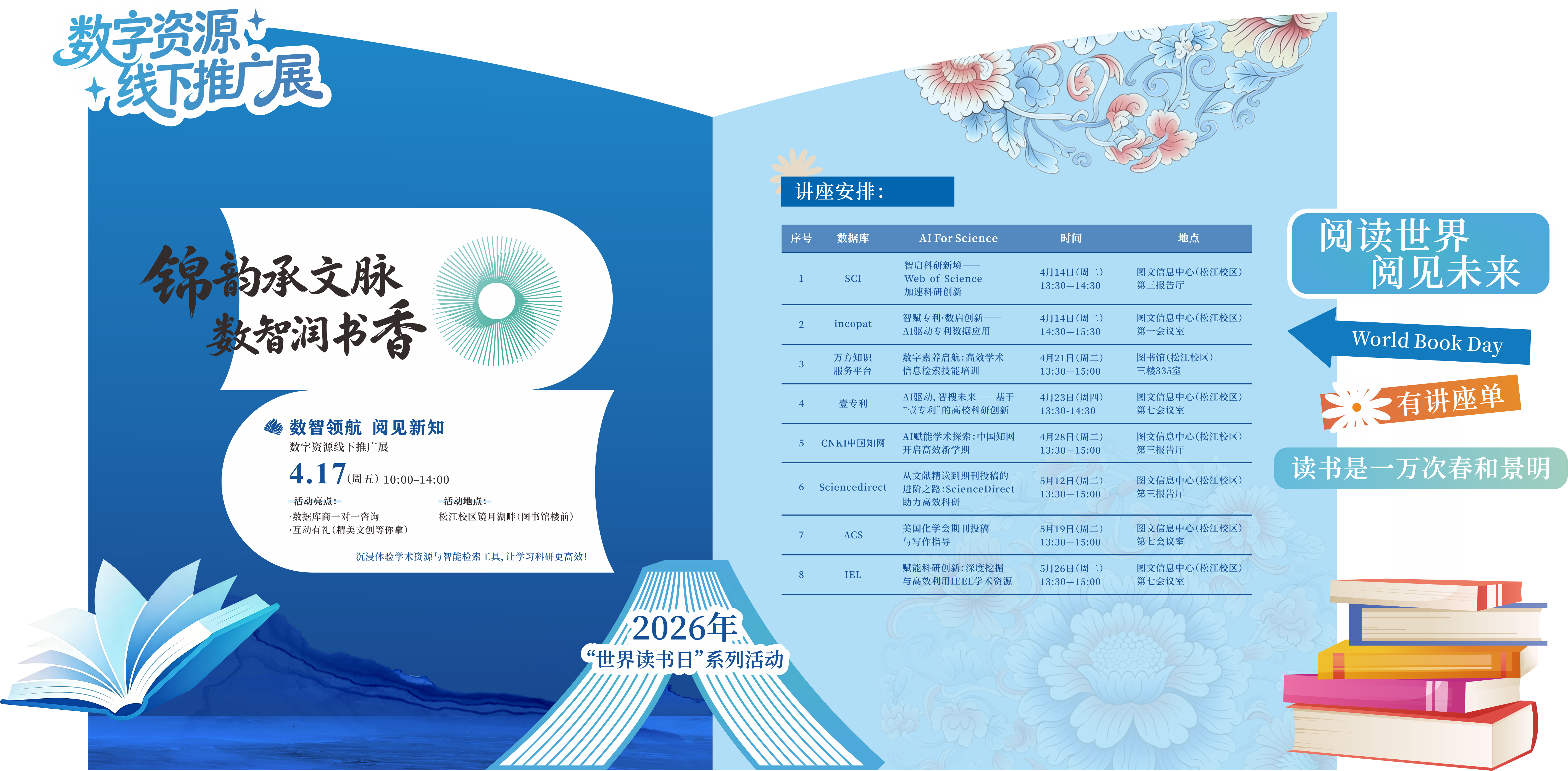 人间最美四月天,正是阅读好时节。2026年4月23日是第31个“世界读书日”。为深入贯彻落实习近平文化思想,扎实推进党的二十大提出的“深化全民阅读活动”重要决策,以及《全民阅读促进条例》相关要求,持续推动“书香校园”建设,学校举办“锦韵承文脉·数智润书香”2026年世界读书日系列活动,活动预告如下: