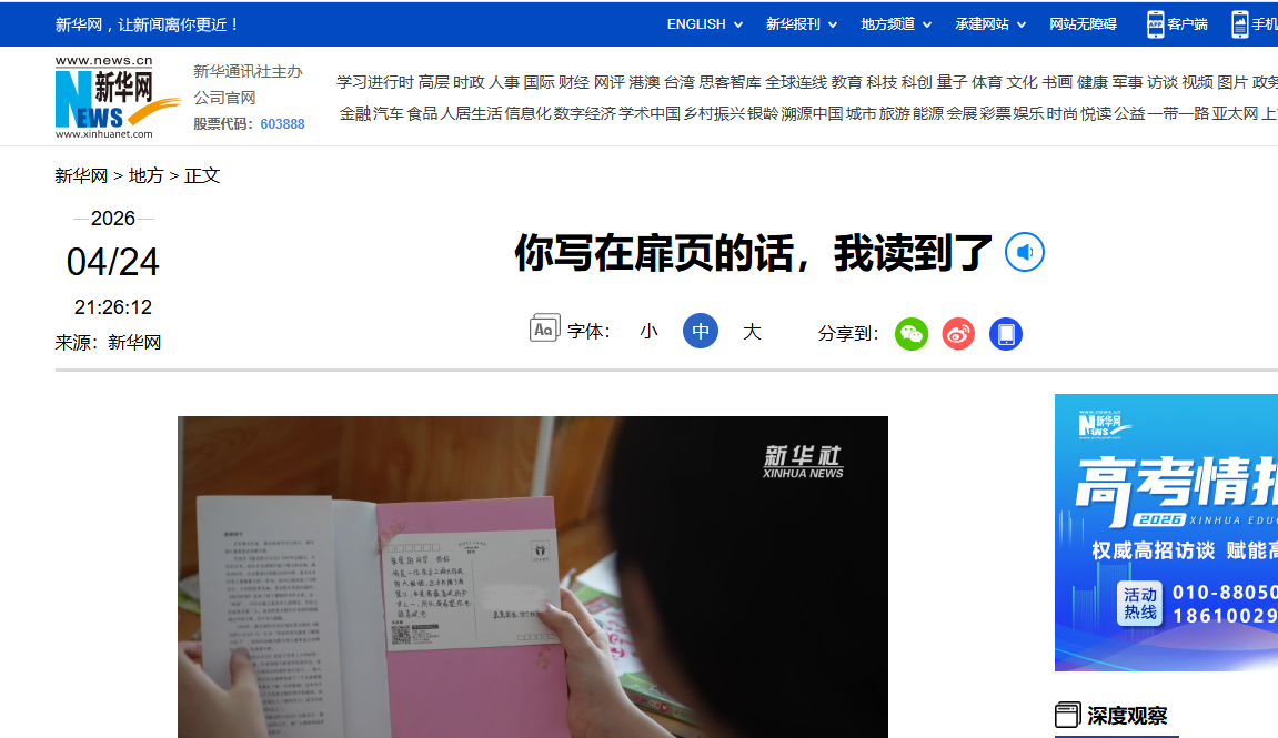 一条条跨越时间与空间的寄语,正安安静静地藏在书本里,等待着下一个读到它的孩子。(时间:2026年04月24日 来源:新华网 作者:何春好、彭奕凯、陆志秋)