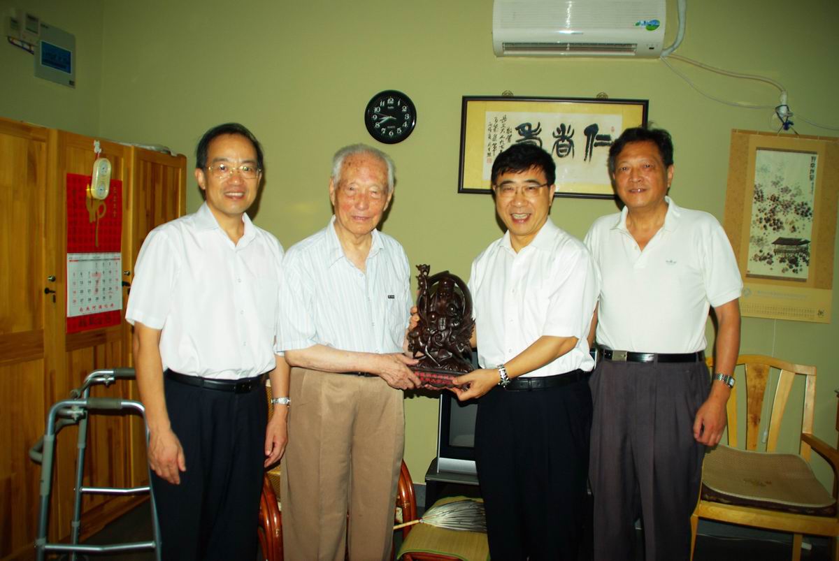 靳德明老人于1910年出生,1970年退休,退休后他一直关心着学校、学院的发展,学校退管会和学院每年为他送清凉和送温暖时,他都要打听老同事的情况,这次纺织学院的领导热情邀请老人在身体允许的情况下去松江新校区看看,老人说以前就有这个想法。临别前,老人高兴地与大家合影,并表示要把照片寄给在国外定居的儿子,让全家和他一起分享这份快乐。